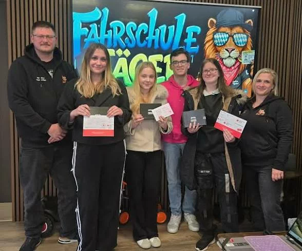 Die Übergabe des von Roman Sibig organisierten Gewinnspiels fand am 14.03.2026 erfolgreich in den Räumlichkeiten der Fahrschule Jäger in Welden statt.